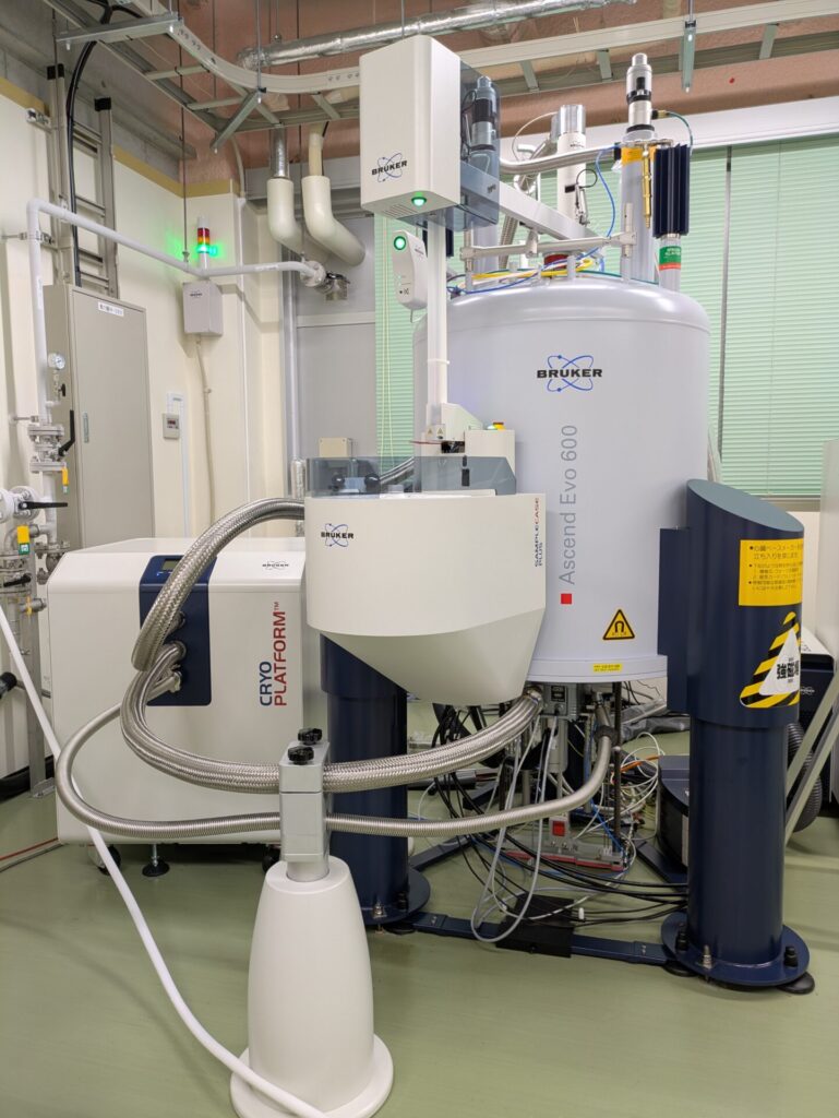 機器名 超伝導高分解能核磁気共鳴装置 メーカー Bruker 型番(形式) AVANCE NEO 600 + CryoProbe 設置場所 22号館260室 公開範囲 学内外
